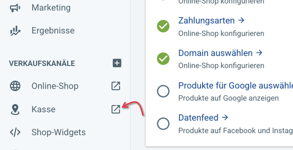 Klicke in der Administration hier, um die Kasse zu öffnen:
